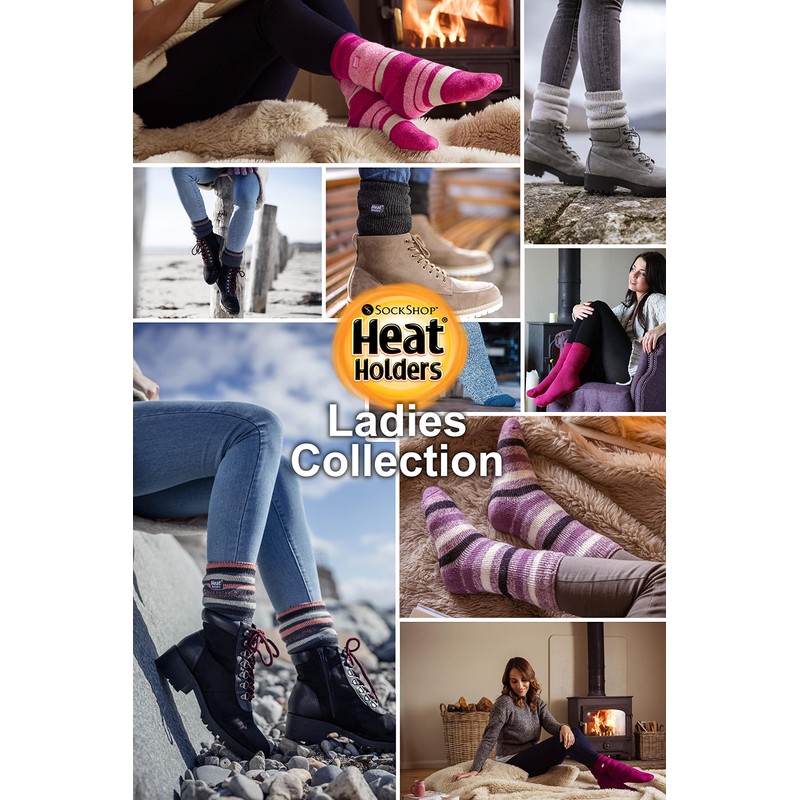 Keep feet toasty and warm in these ladies 3 pack pair socks by Heat Holders. Designed for Winter, these socks feel super soft to the touch with their thick layered soft brushed inner lining.
