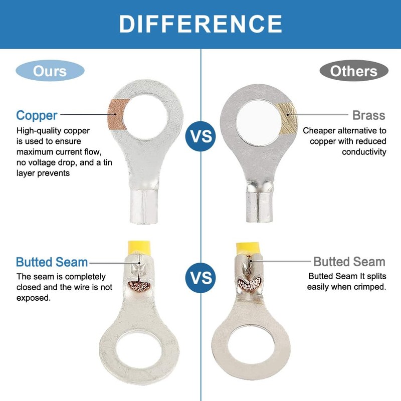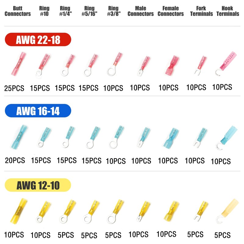 - 【Premium Material】Heat Shrinkable Terminals: The heat shrinkable tubing made by polyolefin, with adhesive lining for protecting splices from water and corrosion.Providing strain relief and against vibration in rugged environment, Which completely insulates and protects electrical connections.In the middle of the splice is high pure copper tube, with excellent conductivity property.HSC offers long-term performance, easy installation, and a low installed cost, which is more reliable than conventional crimp terminals.