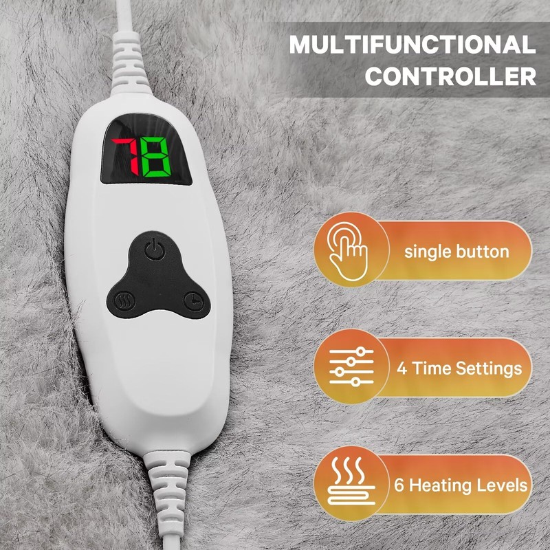 - Easy-to-Use Smart Controller: This electric blanket features a simple controller with 10 Heat Levels for every need (from 86°F to 113°F)-This heating blanket can provide gentle warmth for cold winter evening, sensitive skin or pets, and are great for the ideal relaxing temperature for reading or movie nights, and deep warmth for icy days or muscle soothing. It’s user-friendly with clear indicator lights.Five timer settings for safety and energy savings. Sleep soundly knowing it turns itself off.