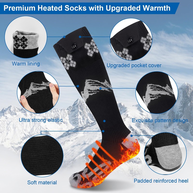 - 【Warm Winter Gifts & Christmas Gifts】- These elegantly packaged electric socks make the perfect gift to show your love and care—ideal for Valentine's Day, Christmas, Thanksgiving, or New Year’s celebrations. Whether for a partner, parent, or friend, they deliver both warmth and comfort during the coldest months. Ideal for the elderly, going out, hunting, fishing, riding, motorcycling, camping, skiing, hiking, outdoor work, etc.