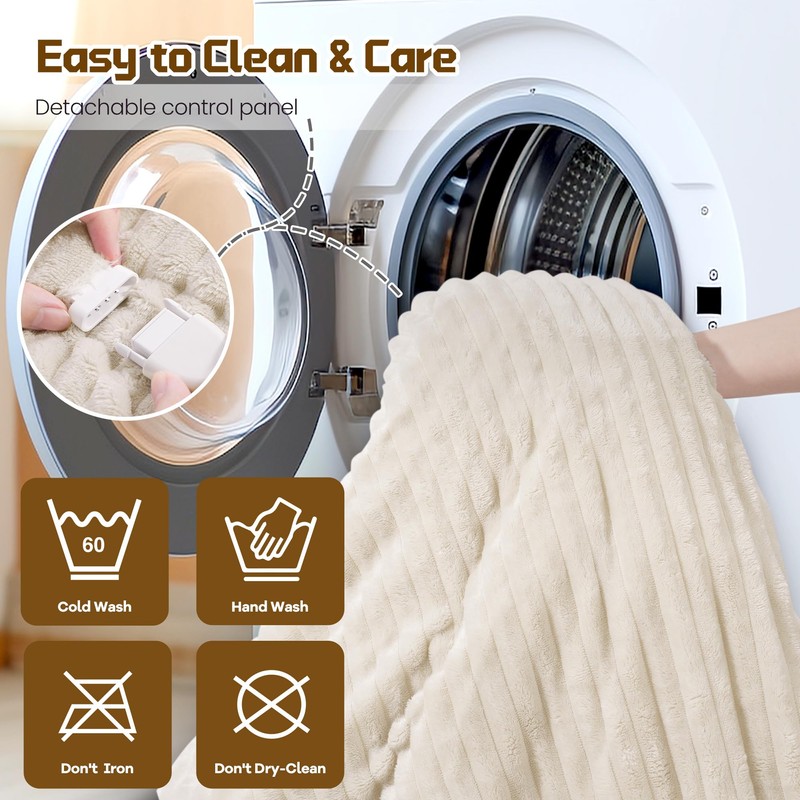 - Safe & Easy Clean: It has overheat protection ensure your safety during normal use. It just need toss it in the washing machine for effortless cleaning. Only remember to unplug the controller before washing to maintain the longevity of the blanket. Very easy to maintain this machine washable heated blanket