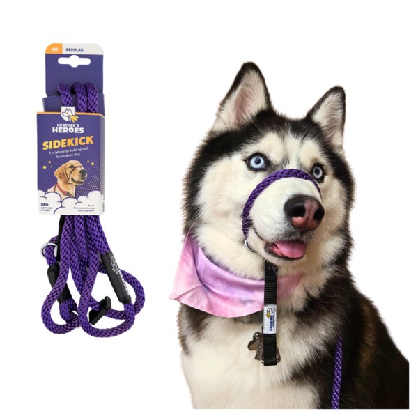 Heather's Heroes Sidekick Dog Headcollar with Leash - Sidekick Leash for Dogs, Effective Dog Training Tool for Leash Reactivity and Behavior Issues (Regular (3/8"), Purple)