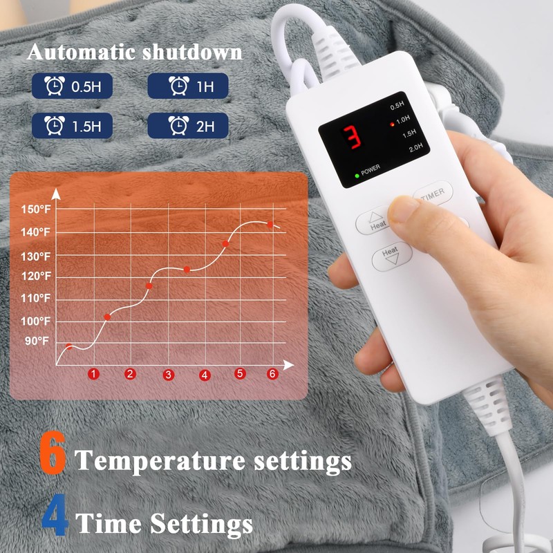 Heating Pad for Waist Warm Hand Heat Pad with Automatic Shut-Off, Quick Heating, with Back Warmer, Electric Blanket, 6 Heat Settings, Auto-Off Timer, Washable(Grey)