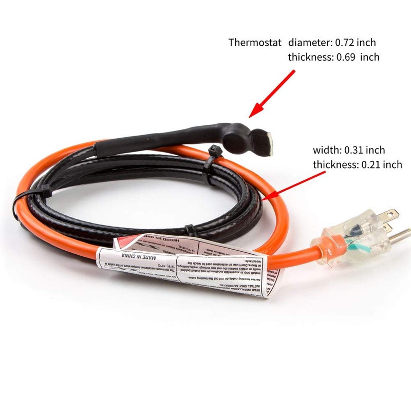 - Pre-assembled easy to install. Including grounded plug with light, built in thermostat, and instructions. Easy to install and use. 120 volt, 7 watts/ft. Built in thermostat to turn the cable 37F on 50F off. Energy saving. 100% screen rate with the Aluminum foil and tinned copper braid.