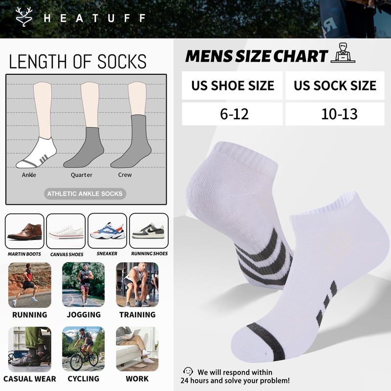 - [HEATUFF BEST CUSTOMER SERVICE]: There are black ankle socks men, white ankle socks for men and grey ankle socks men. Classic colors for all daily activities and outdoor sports. If you have any problems, please contact us! we will solve your problem as soon as possible until you satisfied.