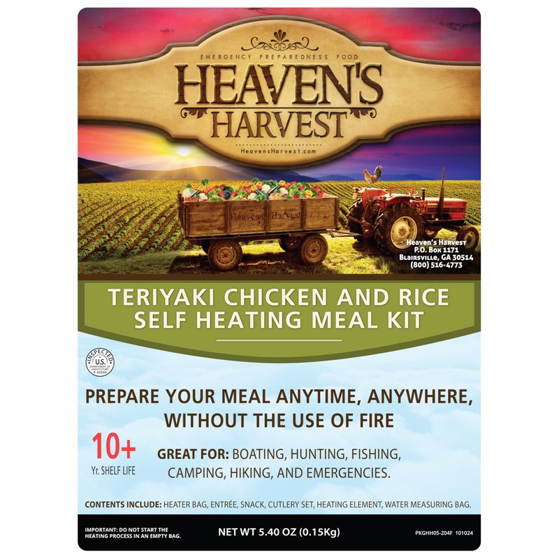 Heaven's Harvest Self-Heating Emergency Meal Kit (10 Year Shelf Life) — Tastier than MRE Meals & Ready-To-Eat in Minutes! Just add water to activate the “cooking” process. (Teriyaki Chicken) (Single)