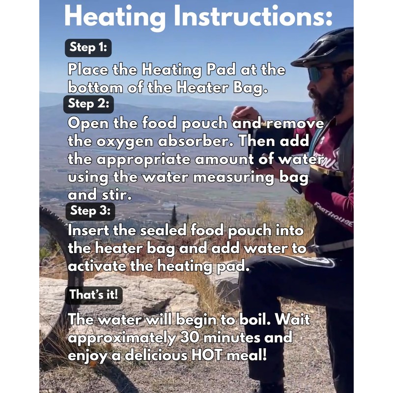 The Heaven's Harvest Self-Heating Meal Kit provides a complete, ready-to-eat meal solution for emergencies, outdoor adventures, or anytime you need a hot meal without access to cooking facilities. Based on technology developed for military field operations, our self-heating meal kit requires only water to activate - no fire, electricity, or external heat source needed.