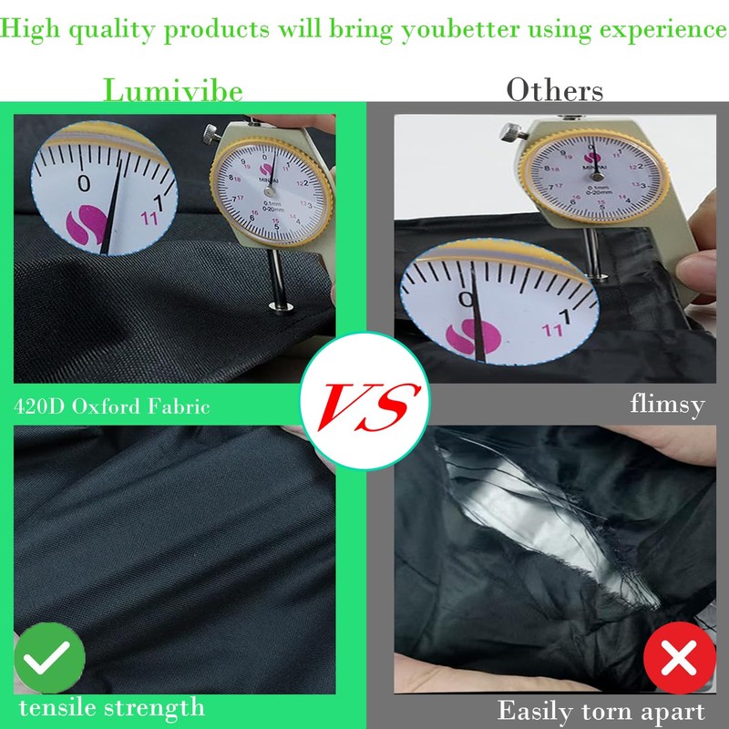 - 420D Oxford cloth outer layer+PVC coating inner lining structure, tear resistant and wear-resistant, effectively resisting outdoor erosion such as rainwater, snow, dust, etc