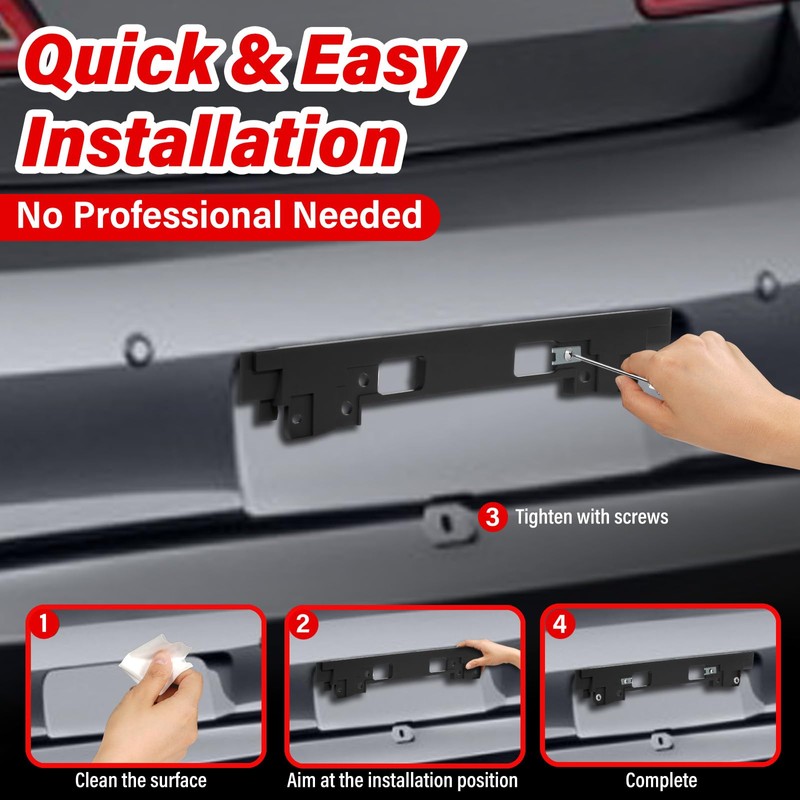 - TOOL-FREE AND QUICK INSTALLATION:Installing our license plate frame bracket is a breeze. Simply use the included screws and the existing mounting points on your vehicle to secure the bracket to the front bumper within minutes – no professional assistance is required. This user-friendly design allows anyone, whether you're a DIY enthusiast or an ordinary car owner, to install the license plate with ease. Enjoy a secure and convenient installation process that saves you both time and effort.