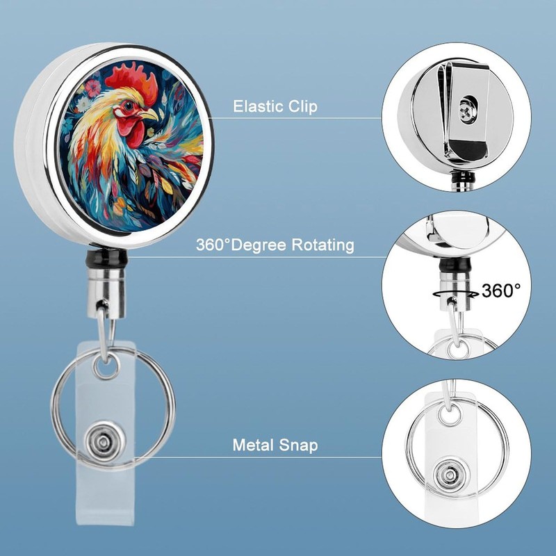 Heavy Duty Badge Reels Retractable Badge Holder with Belt Clip Key Ring for Key Name Card Holder Art Colorful Chicken Badge Reel Metal Retractable Keychain ID Badge Holder