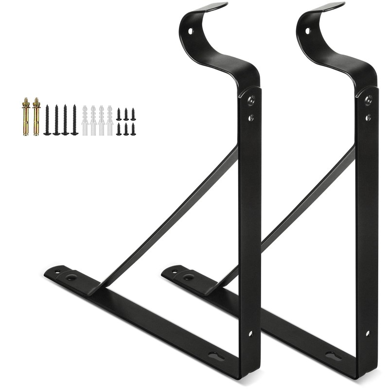 Heavy Duty Closet Bracket Support, Black Wall Mounted Shelf & Rod Brackets - 2 Pack