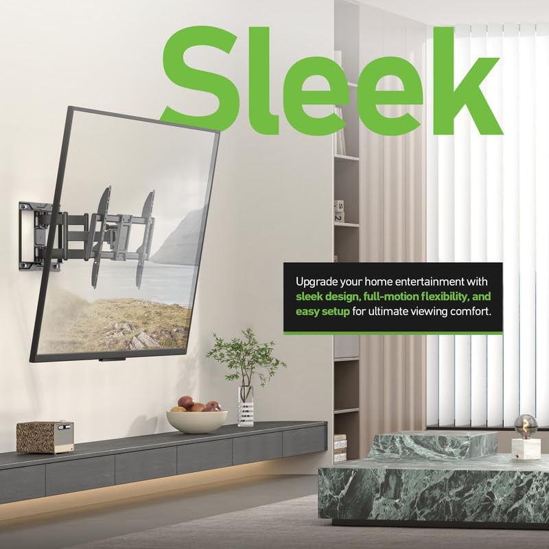 - Fully Articulating and Tiltable: Sits just 2.8” from the wall and extends out to 16.6" for a clean, sleek look that complements any room décor.