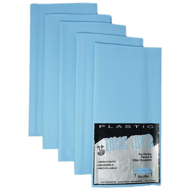 Heavy Duty Plastic Disposable & Reusable Table Covers, Rectangular Size 54" x 108" (Pack of 5) - Baby Blue