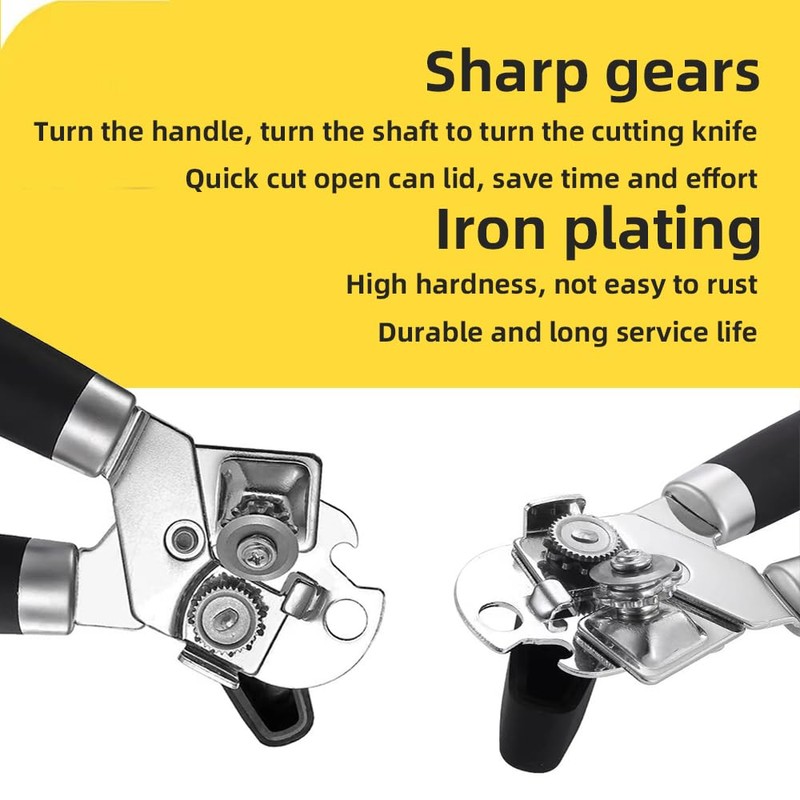 - HEAVY DUTY CONSTRUCTION FOR EASIER OPENING: effortless can opening is here; the can opener features an extra large turn knob that allows you to easily open the can with little effort, so you work with the motion instead of against it; also includes stainless steel construction for a seamless cut and oversized handles that make for an easier grip