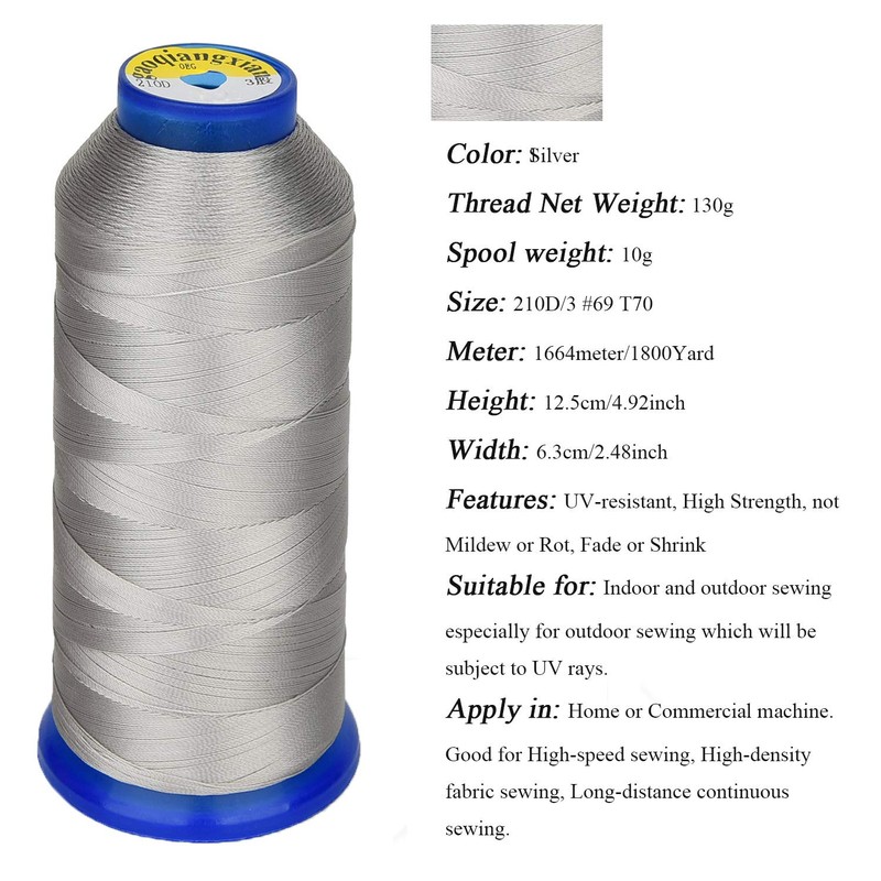 - 【Size】High Strength 100% Polyester Thread. 210D/3 #69 T70. Length: 1800 Yards/spool. Thread Weight: 130g. Thread+Spool Weight: 148g. More Colors, please search for "B0899SR7C9"