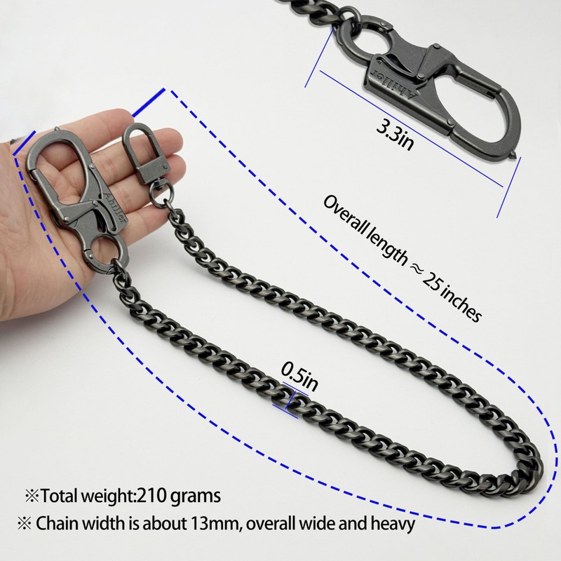 - WARM TIPS:This chain is strong and heavy, so please read the item size details carefully to ensure it meets your specifications. If you encounter any issues with your Ahiller wallet chain, please don't hesitate to contact us. We are committed to your satisfaction and will resolve any problems within 24 hours