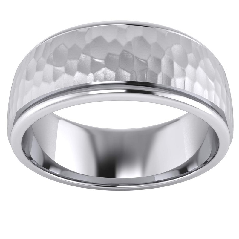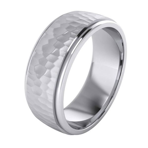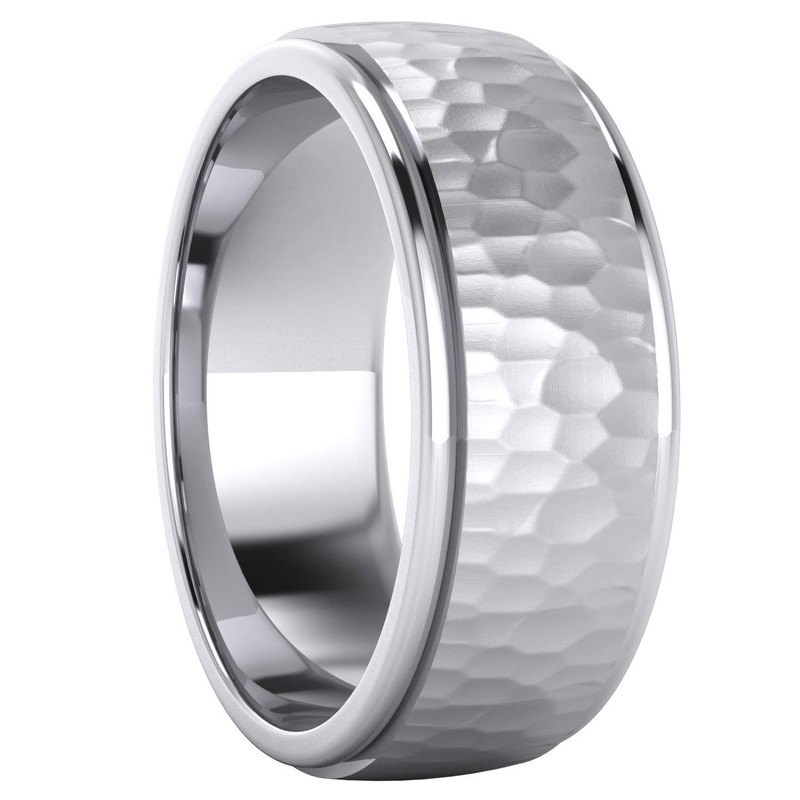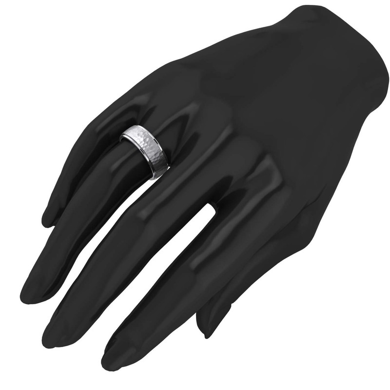 Heavy Solid Sterling Silver 8mm Hammered Unisex Wedding Band Comfort Fit Ring Raised Center Polished Sides (6)