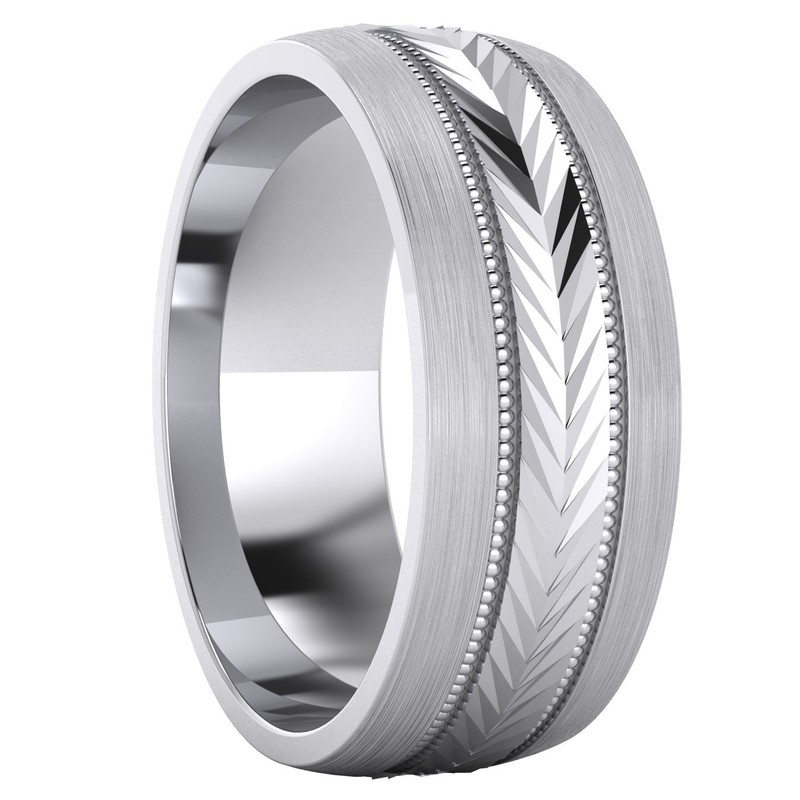Heavy Sterling Silver 8mm Mens Wedding Band Arrow Patterned Ring Comfort Fit Brushed (L)
