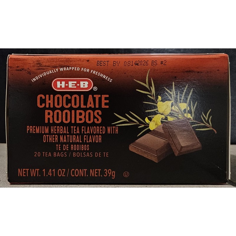 HEB Chocolate Rooibos Herbal Tea With Chicory - 20 Bags (Exp 08/14/2026)