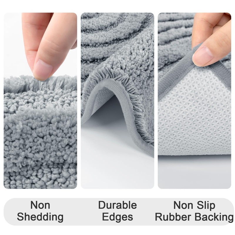 - Bath Rug Sets Machine Washable: This non slip bath rugs use high-quality fiber locking technology. The water absorption and anti-slip properties will not be affected after machine washing and drying. Please use neutral detergent to wash cold while washing, hang to dry, do not iron or bleach