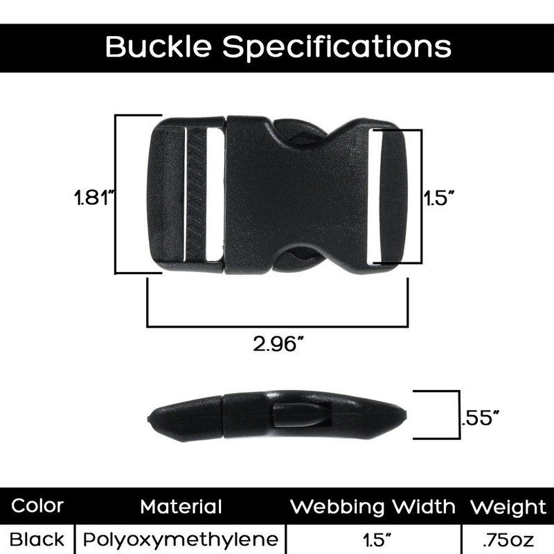 - Opciones de tamaño: elige entre una hebilla de 1 1/2 pulgadas o 2 pulgadas. Nuestras hebillas de 1 1/2 pulgadas miden 75 mm de largo x 46 mm de ancho y sujetan correas o cordones de 1.5 pulgadas o más pequeños. Las hebillas de 2 pulgadas miden 85 mm de largo x 59 mm de ancho y sujetan correas o cordones de 51 mm o más pequeños.