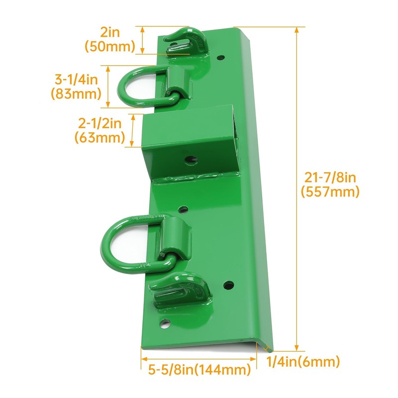 - Feature: Color: Green; Condition: New; Material: High quality steel; Surface Finish: Powder coated; Size: 4.96" W × 21.93"L. Specifically designed for your tractor bucket,sturdy and durable, not easy to rust, and use for a long time!
