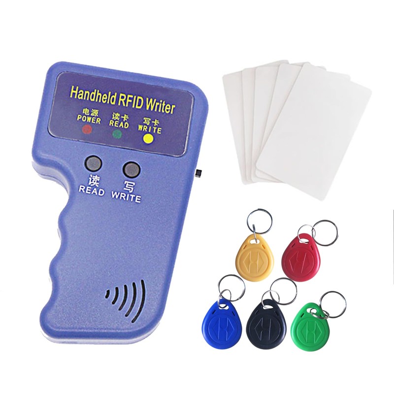 Hecere RFID Handheld id Copier RFID Smart id Card Duplicator Used for T5577 id keyfobs and Cards+5pcs T5577 Keychains +5 T5577 Cards