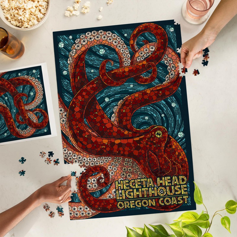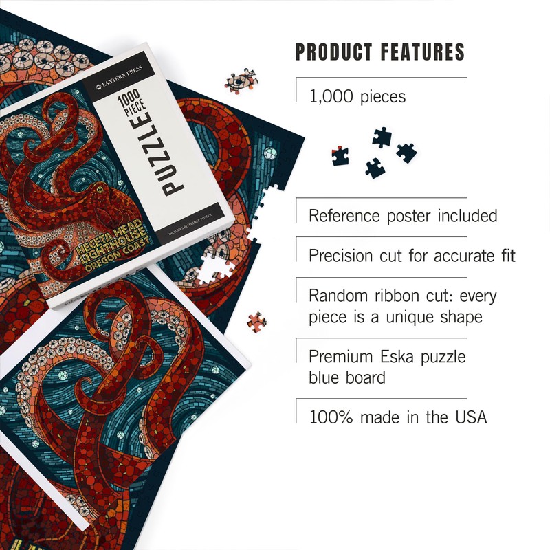 - Heceta Head Lighthouse, Oregon Coast, Octopus Mosaic (1000 Piece Puzzle, Challenging Jigsaw Puzzle for Adults, Made in USA).