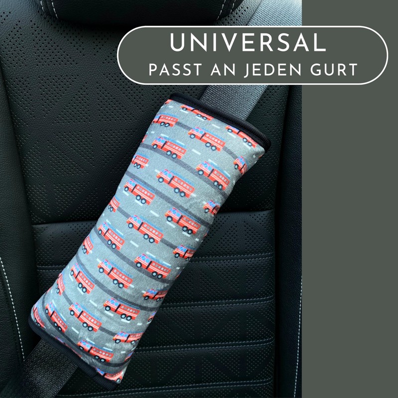 - Vehicle designs that inspire children: fire brigade, police, tractor - combined with bold colours such as red, blue, green and black - make this set a real eye-catcher. The seat belt cushion children's car set combines functionality and child-friendly design and transforms any ride into an adventure on wheels.