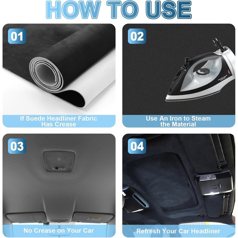 - Makeover Your Car: It’s a good way to replace those old, sagging surfaces and brighten up your interior;Give your vehicle a fresh, luxurious look with this synthetic suede headliner