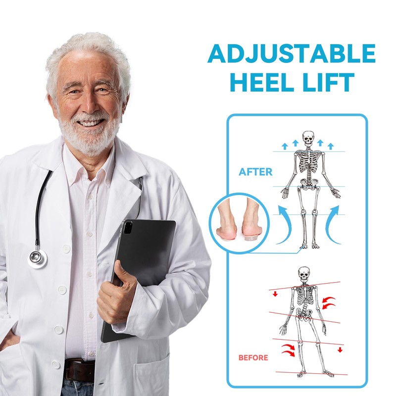 - ADJUSTABLE HEEL LIFT INSERTS - The adjustable shoe lift has 4 layers in total, with each layer being 1/4" thick. The layers can be removed for customized heel lift up to a total of 1 inch. This feature is ideal in correcting leg length discrepancy.