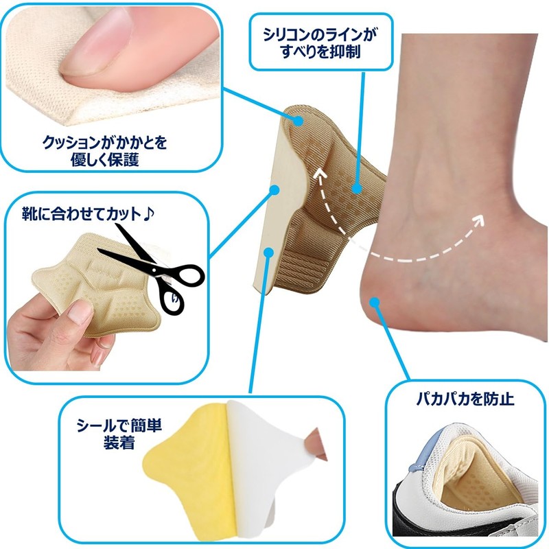 - 【強力な足サポーター】やわらかクッション素材が靴とかかとのブレを軽減し、歩行時の衝撃を和らげます。長時間使用しても変形しにくく、滑り止め効果も抜群で、パカパカのサイズ大きめの靴にも適用し、脱げないようにかかとの位置をしっかりと固定します。購入したばかりのパンプス、履き慣れない革靴、サイズが合わない靴などに使え、痛みを我慢せず快適に歩けます
