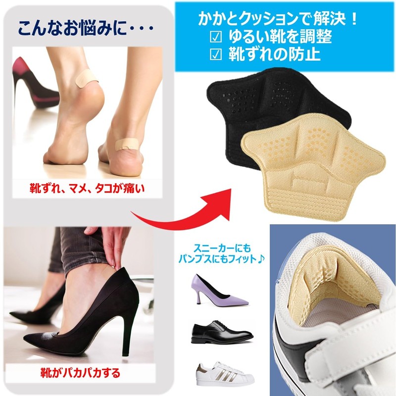 - 様々な靴に対応できる】シンプルなデザインで、どんな靴に装着でも目立たなくて違和感がありません。ヒールクッションパッドは、ハイヒールだけではなく、パンプス、シュール、ビジネスシューズ、サンダル、スニーカーなど様々な靴に使えます。※内部起毛のあるシューズやブーツでの使用はお勧めしません。