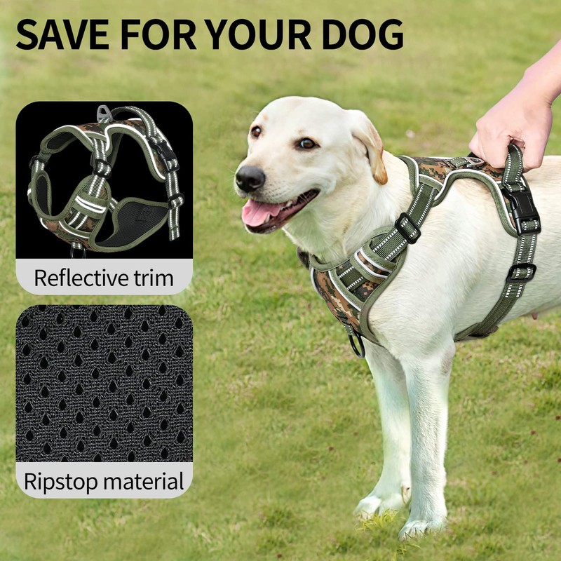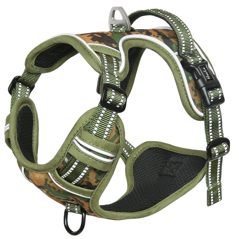 HEELE Dog Harness for Small Dogs, Release at the Neck, Front/Back Clips, Adjustable, Reflective, No-Pull Dog Harness with Padded Handle, Camouflage Green, S