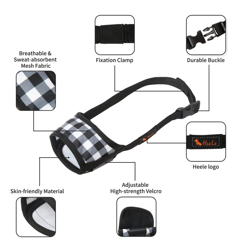 Heele is a professional brand of pet supplies, to bring a better life and memorable time for pet owners and pets. Note: Please measure the dog need what size before order. Measurement methods: Snout Circumference: Around the snout, one inch below the eyes, measure while the snout is slightly open. Snout Length: Measure the distance from the tip of the nose to the base of the nose just below the eyes. Why Muzzle Training? Calmly and cooperatively wearing a muzzle is an important life skill for dogs. Training dogs to wear a muzzle is important so they become accustomed to it and will accept it readily when needed or advised for a specific purpose. A mesh muzzle is an important safety tool that reduces the risk of an injurious bite during veterinary and home care. Please be aware of Key Steps of training dog to accept muzzle. 1.Let him sniff the muzzle and then give him a treat. 2.Touch his nose with the muzzle. Treat. Repeat until he indicates that the muzzle looks interesting. 3.Hold the muzzle with one hand and a treat with the other hand, so he needs to put his nose inside the muzzle to get the treat. Repeat until this step is no big deal. 4.Gently slip the muzzle onto his nose and give him a treat. Remove the muzzle immediately. Repeat a few times. 5.Put on the muzzle and fasten the buckle.Treat. Remove immediately. Repeat it. 6.Put on the muzzle,fasten it,and count slowly to five.Treat. Remove