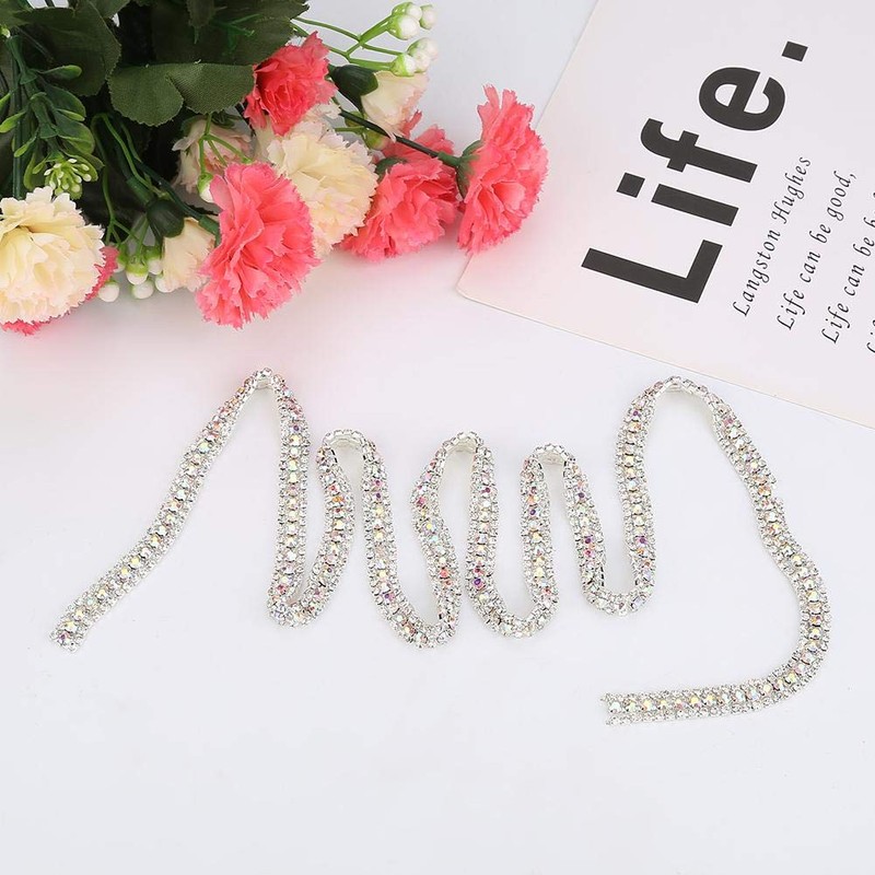 HEEPDD Cadena de Diamantes de imitación de 35.4 Pulgadas, pedrería con Diamantes de imitación Apliques de Vestido Nupcial para el Vestido de Boda Collar Headwear(Plata)