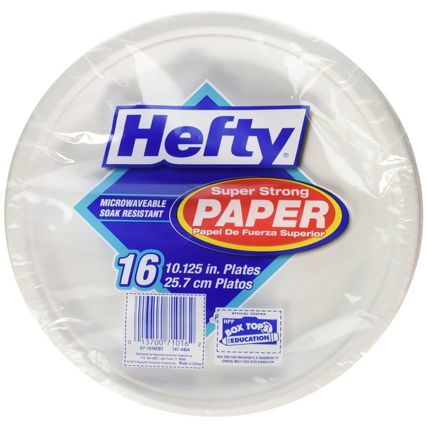 Hefty Everyday Paper Plates (White, Microwavable, 10-inch, 16 Count)