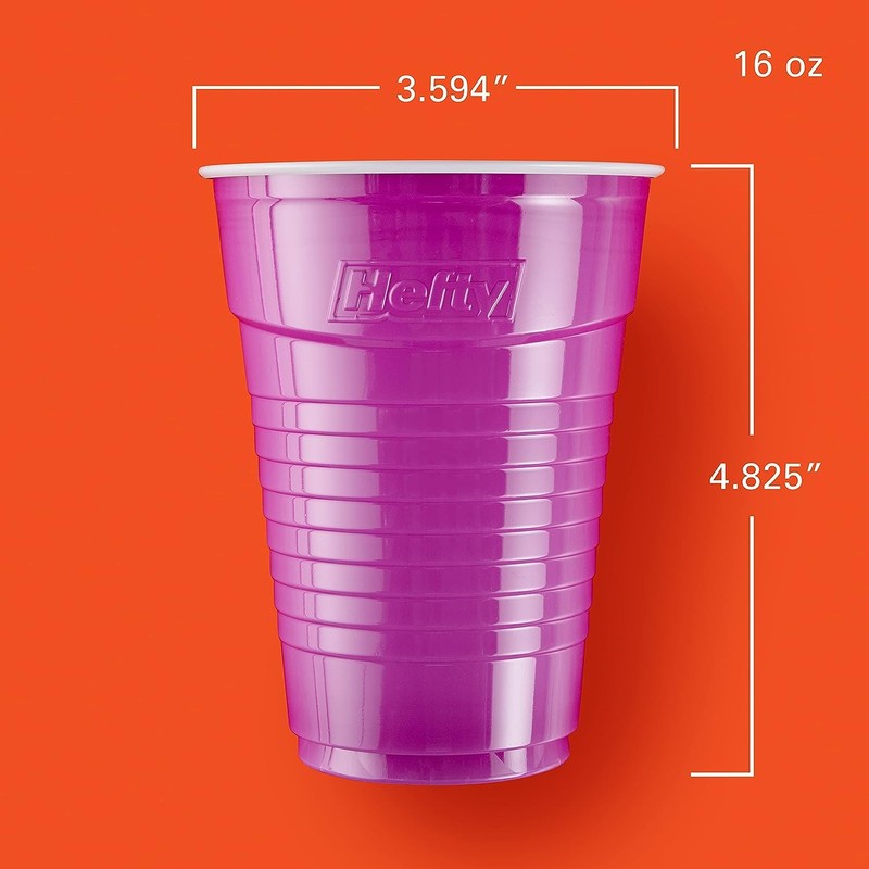 Hefty Party On! Disposable Plastic Cups take all the fuss and mess out of entertaining while adding vibrant color and hassle-free cleanup to your gathering. Get a confident hold on these plastic cups with their easy-to-grip design that helps keep your drink in-hand and not all over your carpet. Hefty plastic party cups feature dependable durability to stand up to cup after cup of your favorite beverages, art supplies and more. Hefty disposable plastic cups simplify cleanup, saving you the time and energy involved in washing countless glasses, so you have more time for relaxing with loved ones.