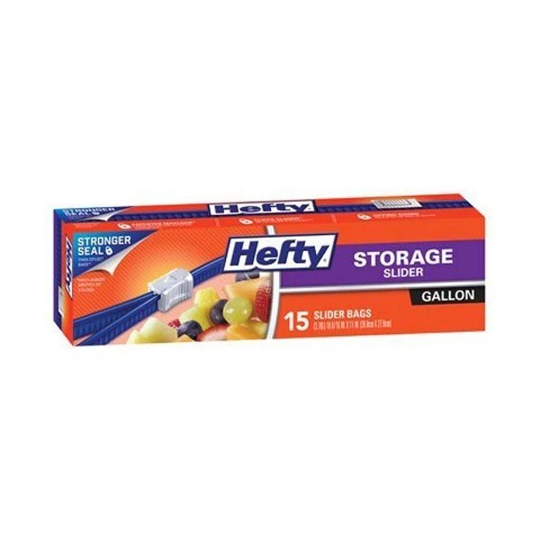 Hefty Onezip Slider Bags, Storage, Gallon, 15 Count