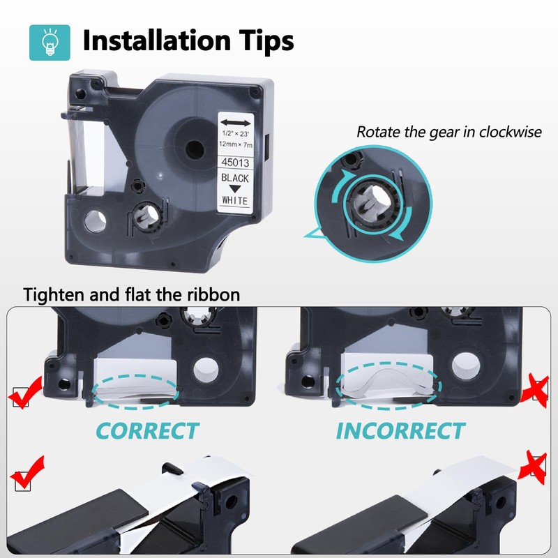 - Package contents: 6 pack label tape compatible with dymo d1 label tape 12 mm black on white replacement for Dymo S0720530 (45013) label cassette; colour: black on white. Size: dymo label tape 12 mm x 7 m