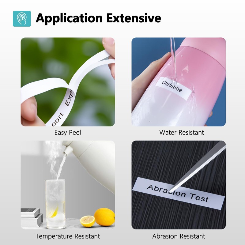- Features: easy to peel, strong adhesive, clear text and colours, temperature resistant, water resistant, chemical resistant, abrasion resistant, fade resistant