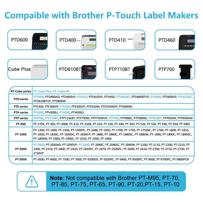 - The tz tape 18mm 0.7 laminated white compatible for Brother p-touch label maker: PTD400 PTD600 PTD400AD PTD400VP PT-D450 PT-D600VP PT-P700 PT-P710BT PT-P750W PT-E300 PT-E500 PT-E550W PT-H500LI PT-2730 PT2430PC PT-1880 PT-1830 PT-1890