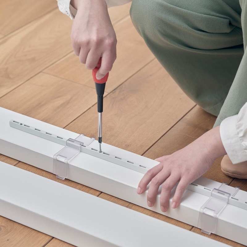 - By combining LABRICO’s basic parts, such as the 2x4 adjusters or floating furniture brackets, you can install it with minimal damage, without drilling screw holes in the wall.