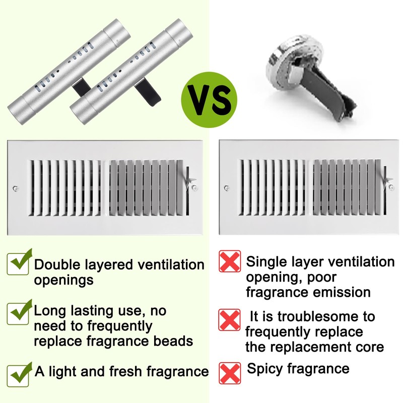 • Effortless Freshness: experience effortless freshness by simply attaching our air freshener for HVAC vents; The user friendly design allows for easy setup, easily transform your environment into a fragrant paradise