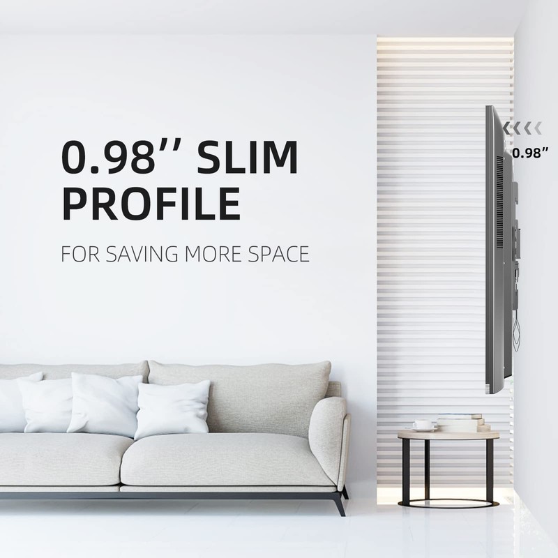 - Save space - keep your TV 0.98 inch close to the wall to save space and for a sleek and tidy appearance.