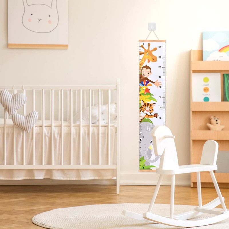 • Cute animal patterns: height chart children's animal motifs such as giraffe, elephant, monkey and more, which can easily attract children's attention and can be hung as decoration in children's rooms.