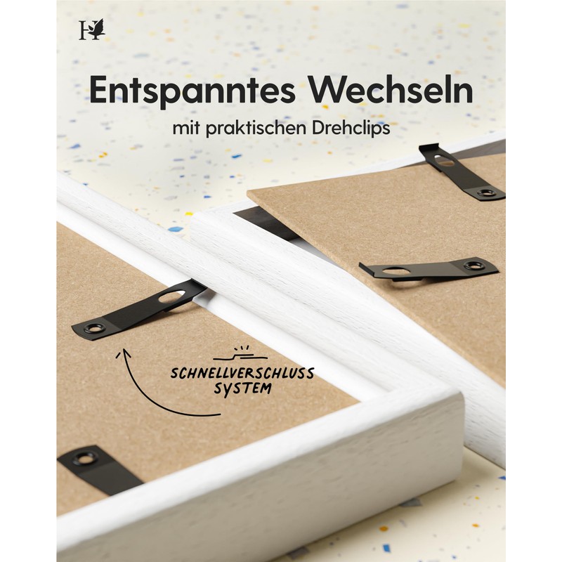 - Quality from Germany: The high-quality picture frame with visible grain and high-gloss acrylic glass is shatter-proof and durable! The ‘real wood’, made of high-quality real wood for pictures, can be hung on the back panel with flexible turning clips