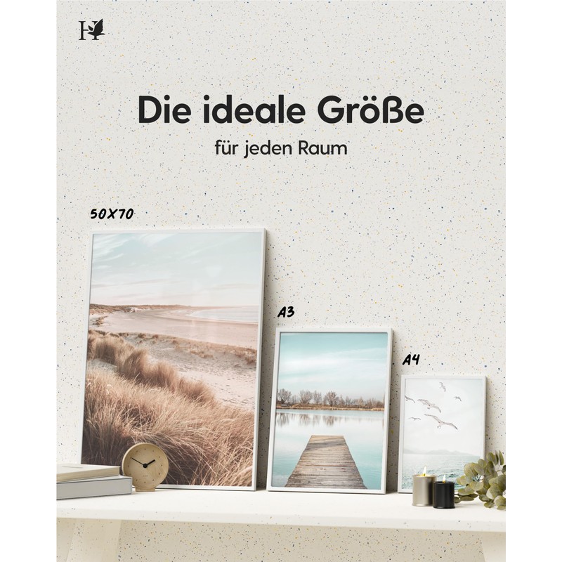 - Aesthetic room decor: Minimalist and timeless. High quality: The picture frame with a frame width of approx. 1.2 cm is always suitable. This makes it suitable for a bedroom, living room, office, kitchen, children's room, hallway decoration, vintage boho or modern decoration.