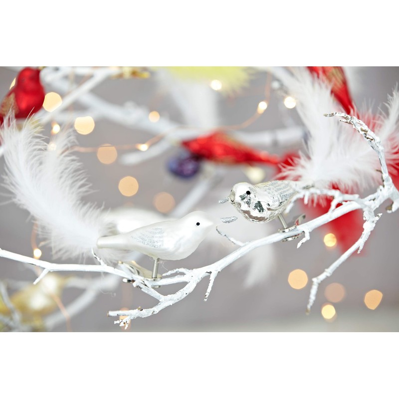 • Colourful tree decoration: In this set you will receive three silver glass birds. The matte and shiny figures have a feather tail in the same colour and will be a real eye-catcher on your Christmas tree.