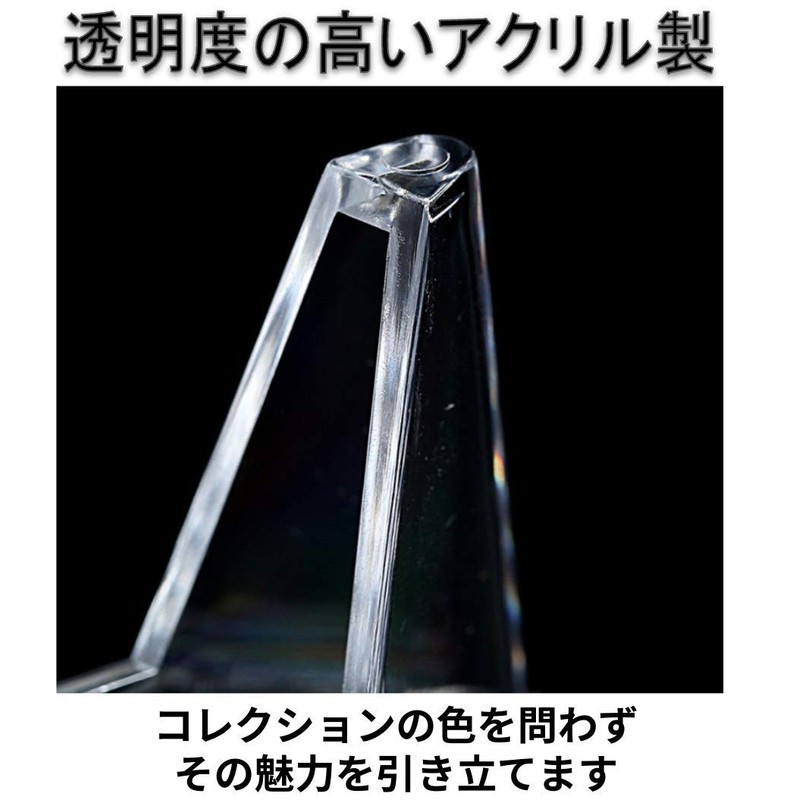 Acrylic stand with high transparency. The front hook is also clear color, so it will not interfere with your collection and make it stand out.